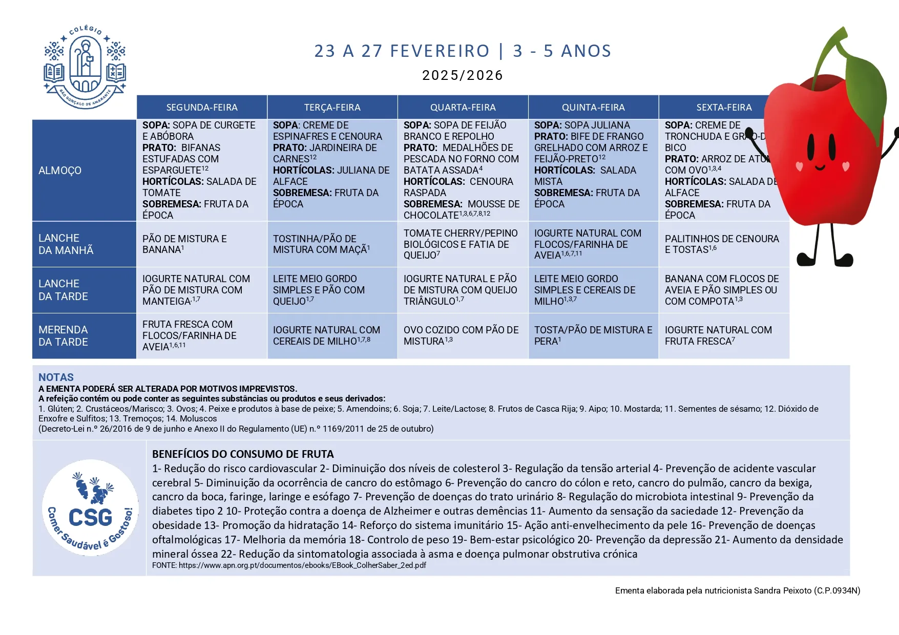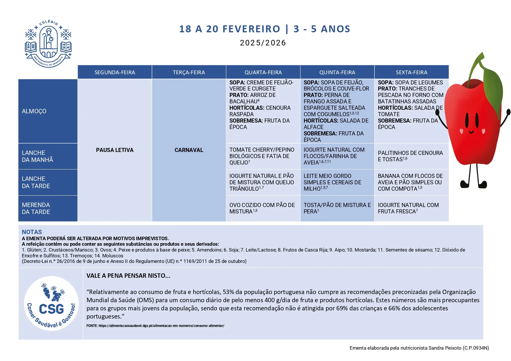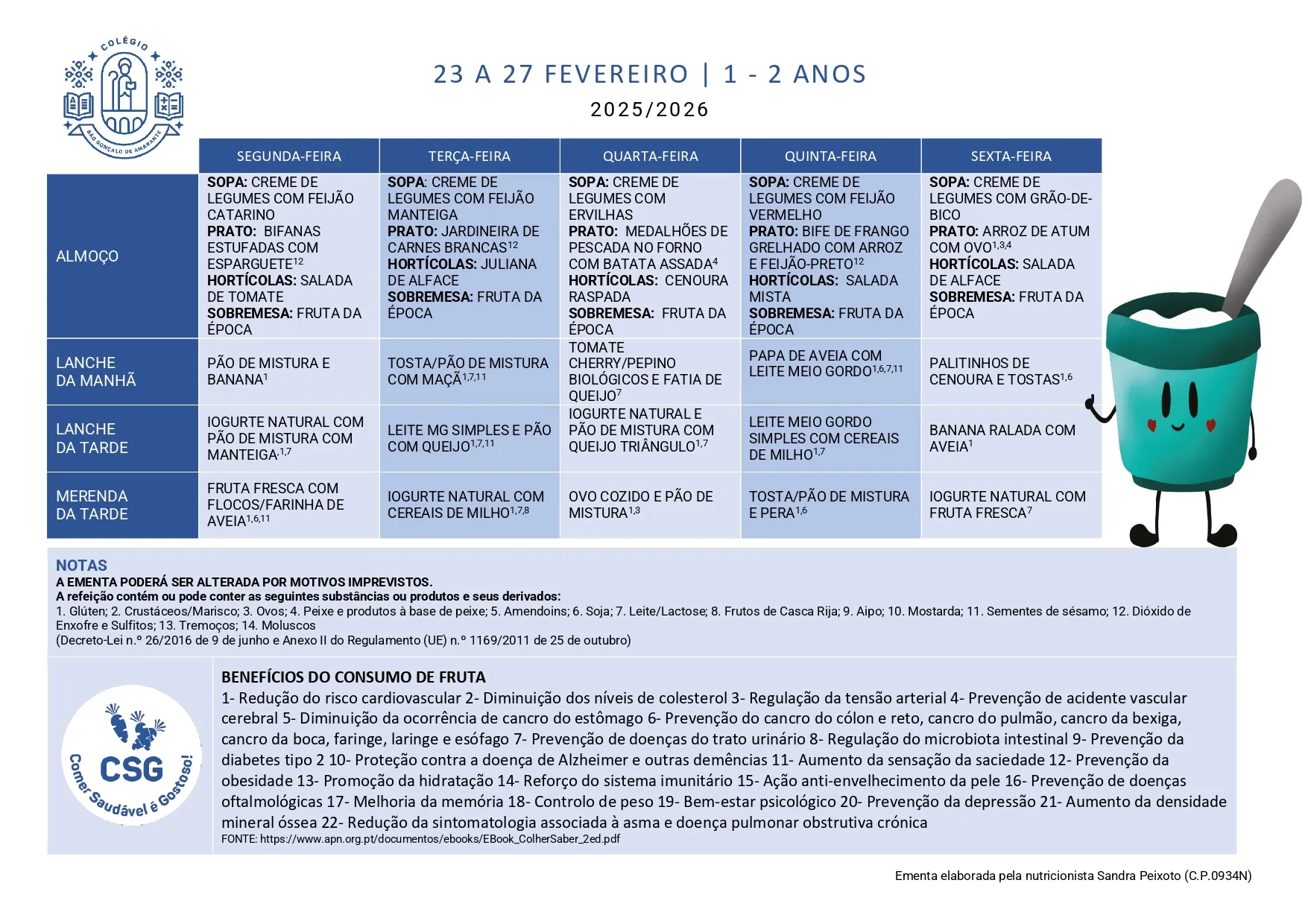 Ementa Home> Ementas> Ementa 09 - 13 fev 2026 Berçário 1 a 2 Anos 3 a 5 Anos Ementa 23 - 27 fev 2026 Berçário 1 a 2 Anos 3 a 5 Anos