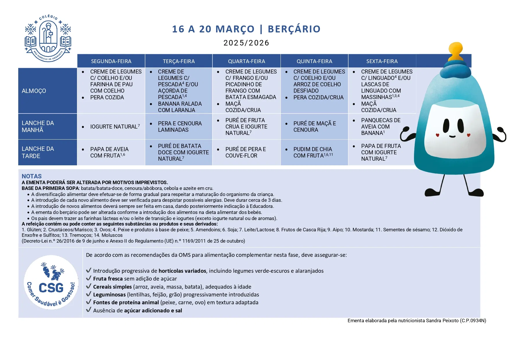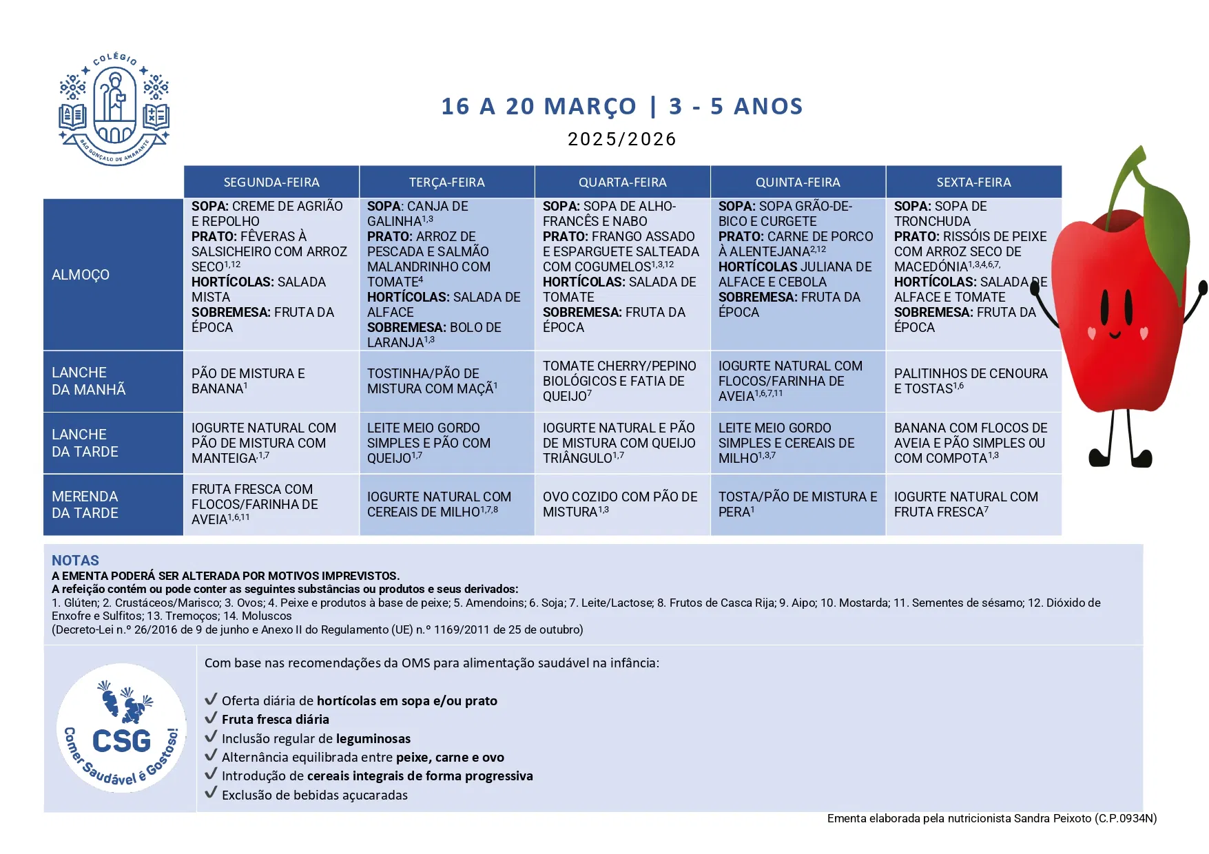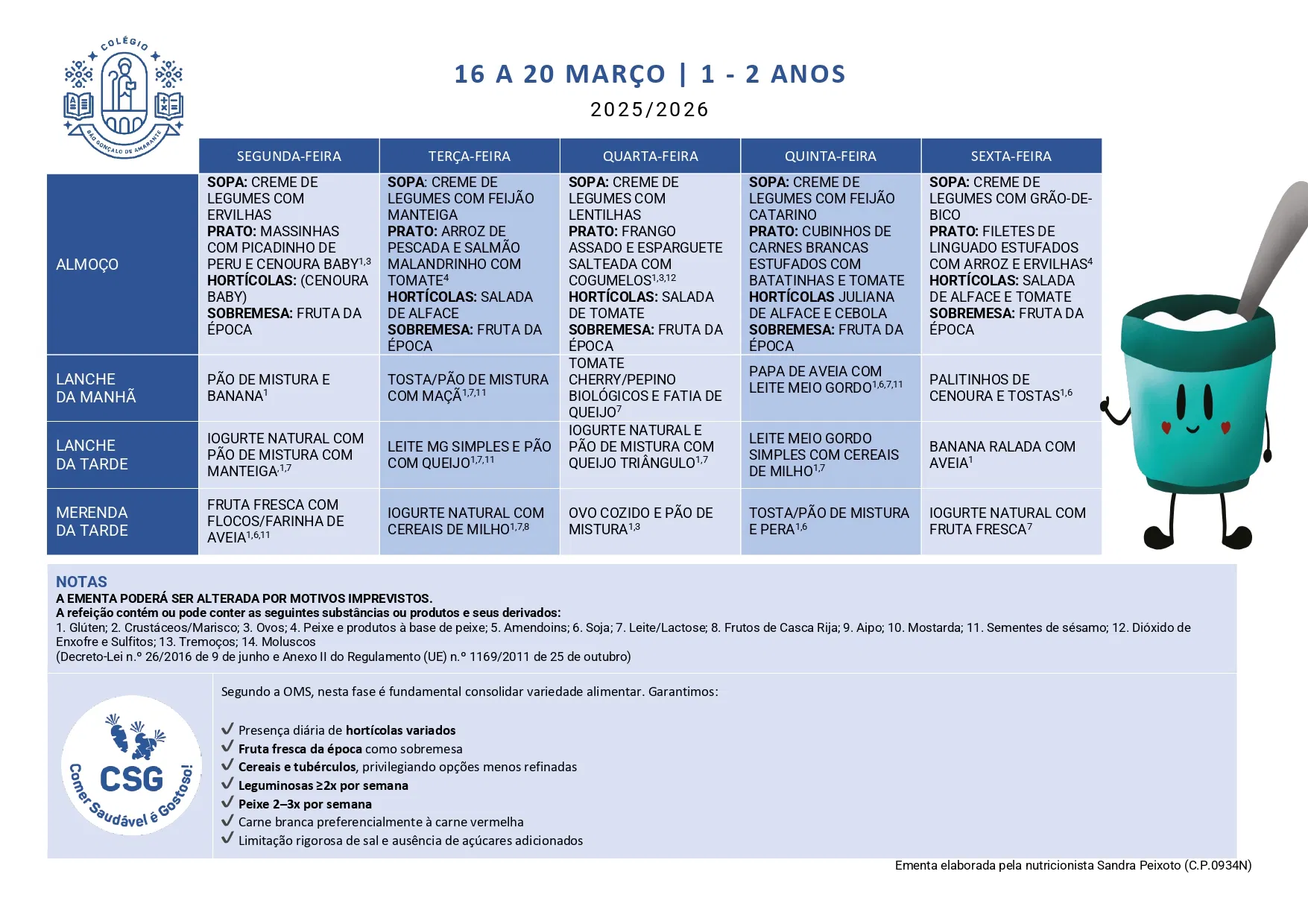 Ementa 16 - 20 mar 2026